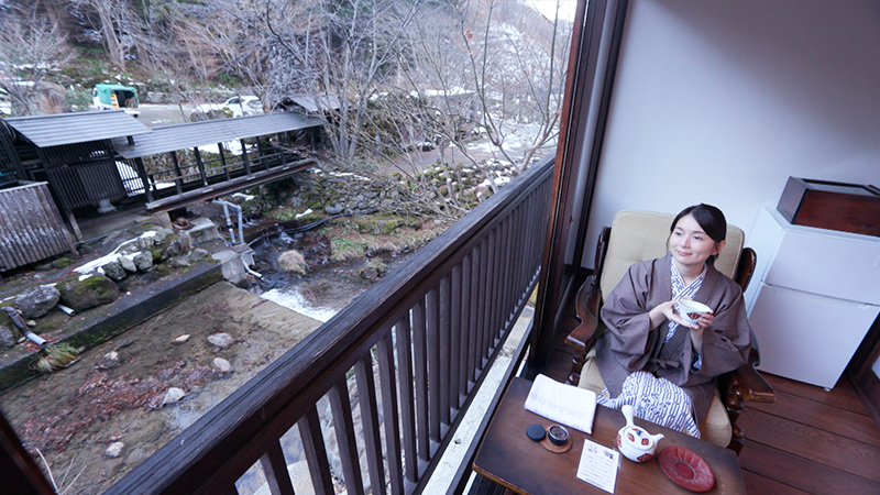 群馬県の北部、標高800mにある法師温泉。1875年創業、国の登録有形文化財の宿「長寿館」へ。今回泊まるのは、本館と法師川を挟んで建つ薫山荘。薫山荘には、6つの客室があり、すべての部屋から、法師川を望むことができます。宿の代名詞とも言える「法師乃湯」は、1895年に建てられました。本館とともに国の登録有形文化財となったこの湯小屋は、約50畳の広大な空間です。源泉は、湯船の底から自然に湧いていて、底には玉石が敷き詰められています。湧き出すお湯の温度は、41度ほどですが、自然に湧き出すお湯に加えて湯口からも注ぐことで、手前の湯船の温度が少し熱くなっています。浴槽に渡された杉の丸太を枕に、ゆっくりとお湯につかるのが、法師温泉の入浴スタイル。夕食は部屋で。上州牛のステーキや、ブランドニジマスのギンヒカリをお造りでいただきました。平成に入って宿泊者専用として新たに造られた「玉城乃湯」は、総ヒノキ造りの贅沢な内湯。お湯は、約1km離れた源泉から引いています。外には大きな石が並ぶ庭園風の露天風呂。先々代の主人が趣味で集めた、北海道産の日高石や群馬県産の三波石など、珍しい石で作られています。登録有形文化財の宿で名湯に浸る…至福の時間が流れました。