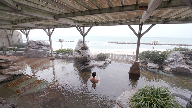 村上市の海沿いに位置する瀬波温泉。明治37年、石油を掘削していた際に、地中から熱湯が噴き出したのが始まり。湯量豊富な瀬場温泉の中で、一際大きなお風呂を持つのが「湯元 龍泉」です。平成元年創業の温泉宿で日帰り入浴でも利用できます。横は約25メートル、縦は約15メートルある、とても広々とした野天風呂です。地下約180メートルから沸き出す自家源泉は、毎分273リットル。95度ある源泉を、加水して42度ほどに調整しています。滝湯や泡風呂もあります。瀬波温泉では、90度を超える高温の源泉を使って温泉たまごを作ることができます。熱湯にそっと卵をめ、10分ほど待つと…ふわふわの温泉卵ができました。