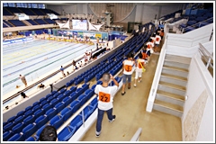 シドニーオリンピック競泳日本代表で「ハギトモ」の愛称で親しまれている萩原智子さんのアテンドのもと、公式練習を見学。