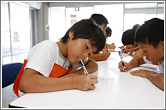 北島選手とあくしゅできてうれしかった。いろいろな国の人とふれあえて、楽しかった。いつか世界競泳に出たいと思った。日本の選手が世界新きろくをだせるように、家でおうえんしたい。