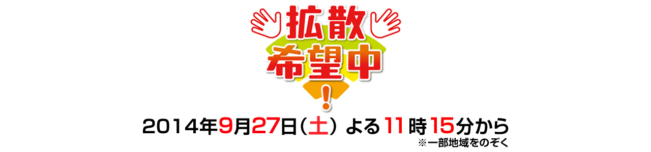 「拡散希望」という言葉。 twitterなどのSNSで知っている情報を多くの人へ広めたい時に使われる言葉ですが、実際に世に広まり話題になるのはごく一部… そこでまだ知られていない情報や、面白い人達を世の中に広めたいという拡散希望者を募り、テレビで拡散させるチャンスを与えようという番組です。 ただし、全ての情報を拡散するという訳ではなく、番組ゲストたちが厳正な審査をしながらVTRをジャッジしていき、世に広める価値があると認められた情報のみが拡散される! 『拡散希望中!』とはまだ知られていない情報や、面白い人達がいる拡散希望者を募りテレビで拡散させるチャンスを与えようという番組。どんな衝撃VTRが出るかお楽しみに!