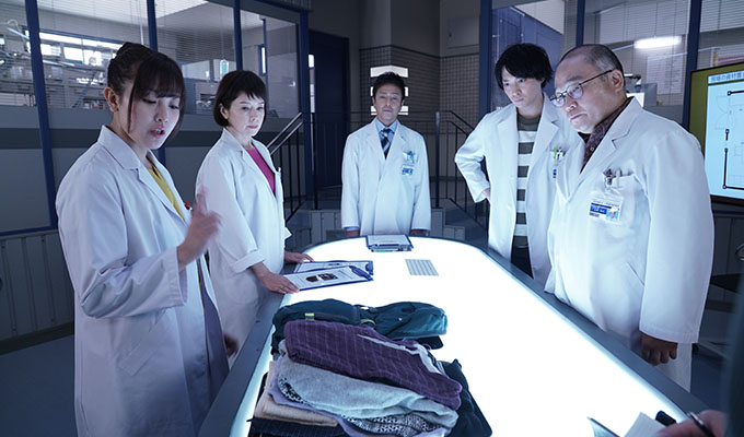 現場で鑑識係の発見した血液の付着したガラス棒を鑑定する科捜研の面々。大麻などを吸引するパイプの一部と分かり、被害者の唾液と、被害者以外の指紋が検出されるが、その指紋はなんと平野巡査のものだった!