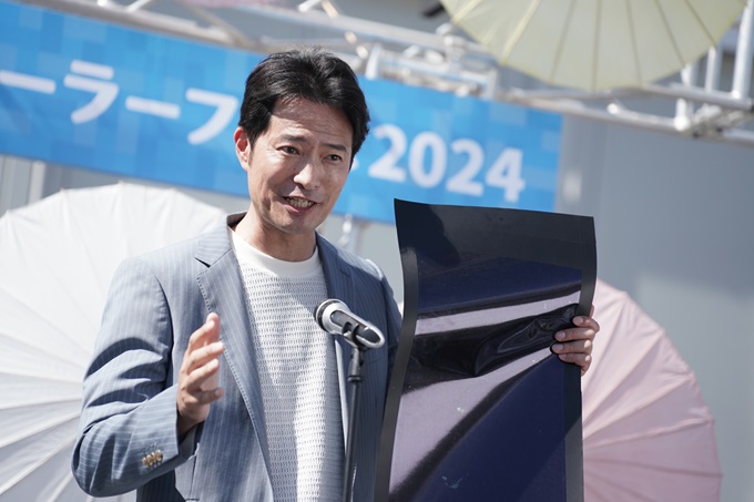 彼女が着用していたブルゾンには“ペロブスカイト太陽電池”が付けられており、そのブルゾンは2年前、“ソリスラボ”という太陽電池開発ベンチャー企業が開いたイベント“ソーラーフェス”のために作られたものだとわかる。