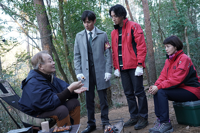 その時、木陰から遺体を検視する榊マリコ(沢口靖子)たちを見つめる、フードを目深にかぶった“魔法使い”のような出で立ちの人影が。科捜研のメンバー・橋口呂太(渡部秀)が追いかけ捕まえると、男は被害者と同じく、キャンプファイヤーの火の粉から身を守るポンチョをまとったソロキャンパー・黒石萬作(斉木しげる)だった。