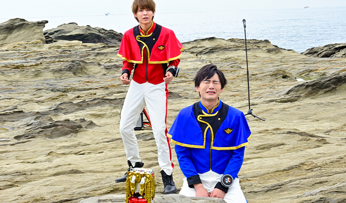 一方、為朝(木原瑠生)たちは、見えない敵は風景に溶け込んでいるからだと見抜く。その正体は邪面獣プロジェクターゴモリュウだった。ザビューンエクスプレスとギガントドリラーで応戦するキラメイジャーの元に、充瑠と時雨とともにハコブーが飛来。オラディン王により魔進となったクリスタリア一の剛の者、魔進ハコブーは、豪快に名乗りを上げるのだった。