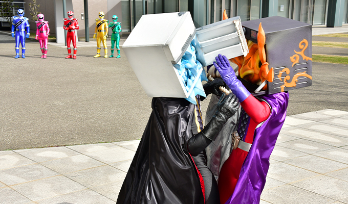 次のキーワードは「コンビ」。ファイヤは、いきなり兄弟ゲンカを始めた「オーブン邪面」と「フリーザー邪面」だと予想するが、為朝は「兄弟ではない」と言っていたため違うよう。ジェットは、ヨドミヒメを背負った「ミュージック邪面」もコンビと考えるが、あの時は為朝が眠っていたため記憶にないはず。