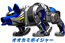 オオカミ座系出身の獣人戦士。 ジャークマターに一族を滅ぼされ、 戦士としての誇りを失っていたが、 ラッキーと出会い再び打倒ジャークマターに立ち上がる。 難しいことは考えず、野性のカンで行動。 広島弁のような口調で、語尾に「~ガル」をつけて話す。 オオカミブルーは、 野性的なスピードと攻撃力で、敵に襲いかかる!