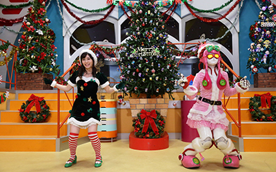 女の子チームは、ハミィのキュートなツリー&ラプターのピンクサンタ。