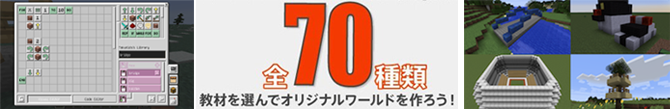 ・70個の教材から自分の好きなテーマを決めて、命令文を選びながらオリジナルワールドを作成することができます!