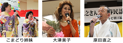 こまどり姉妹さん・大津美子さん・原田直之さん・園まりさん・大島花子さん・佳山明生さんにご協力を頂いて、歌謡曲から民謡まで懐かしいヒット曲を披露する「歌謡ショー」を企画しています。