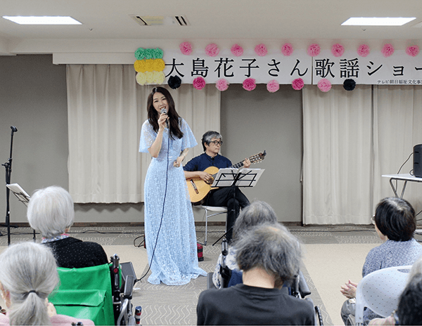 2025年7月17日、東京・杉並区の特別養護老人ホーム「マイルドハート高円寺」で、歌手・大島花子さんによる歌謡ショーが開催されました。