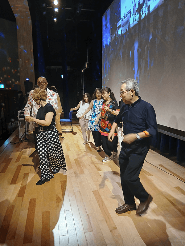 JINさんに教わったステップを踏む方、懐かしい思い出に浸りながら踊る方など、参加者の皆さんはそれぞれのスタイルでシルバーディスコを楽しまれていました。