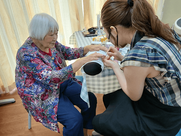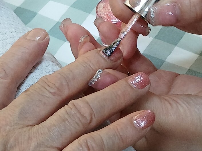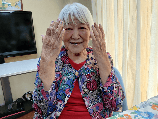 ネイルのケアでは、かつて美容院を2店舗経営されていた、お客様を綺麗にすることが大好きなご利用者様がいらっしゃいました。