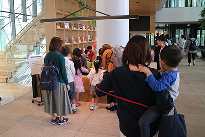 参加した方たちがこのひと時を楽しみ、笑顔を浮かべ子供たちと帰って行くのを嬉しく見送りました。ロビーでは「はだかの王さま」の絵本を手に取った女の子が、「この絵本欲しい」とお母さんにおねだり。中井さんから絵本にサインをしてもらうと、「絵本を大切にするね」と約束の指切りをしていました。