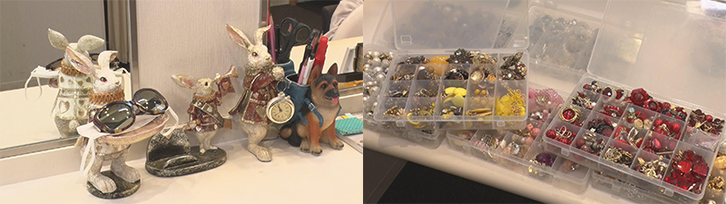 楽屋には色とりどりのアクセサリーが大量に。