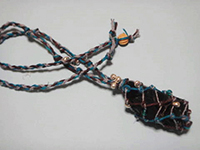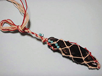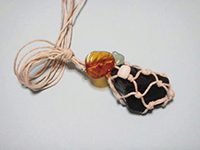 石器の材料として知られる黒曜石。魔除けのパワーストーンでもある黒曜石を麻ひもで包み、ビーズで飾りネックレスやキーホルダーを作ります。