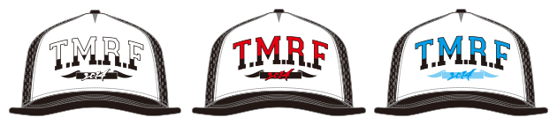 定番キャップは赤/青/黒の3色をラインナップ。ツバ裏にはフットボール風のロゴをあしらいました!