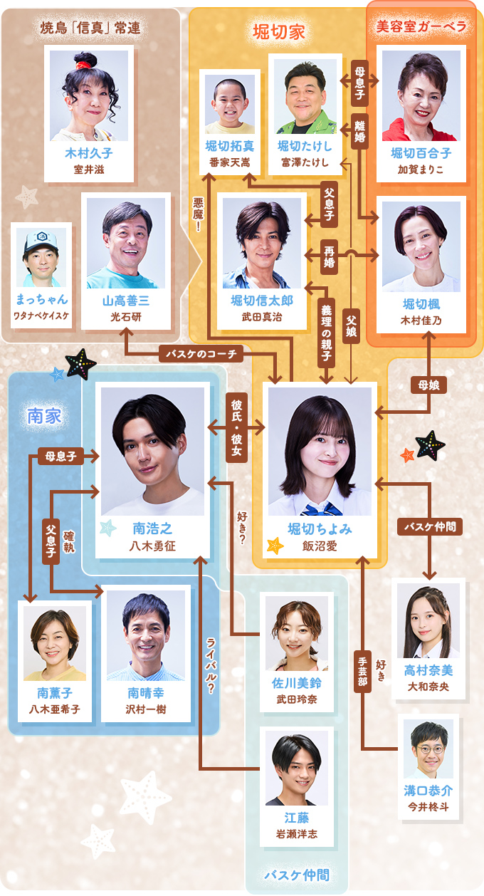 堀切ちよみ 南浩之 堀切信太郎 佐川美鈴 高村奈美 江藤 堀切拓真 南晴幸 南薫子 山高善三 木村久子 堀切百合子 堀切楓 まっちゃん 溝口恭介 堀切たけし