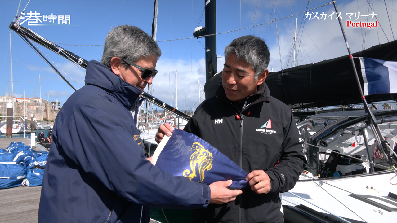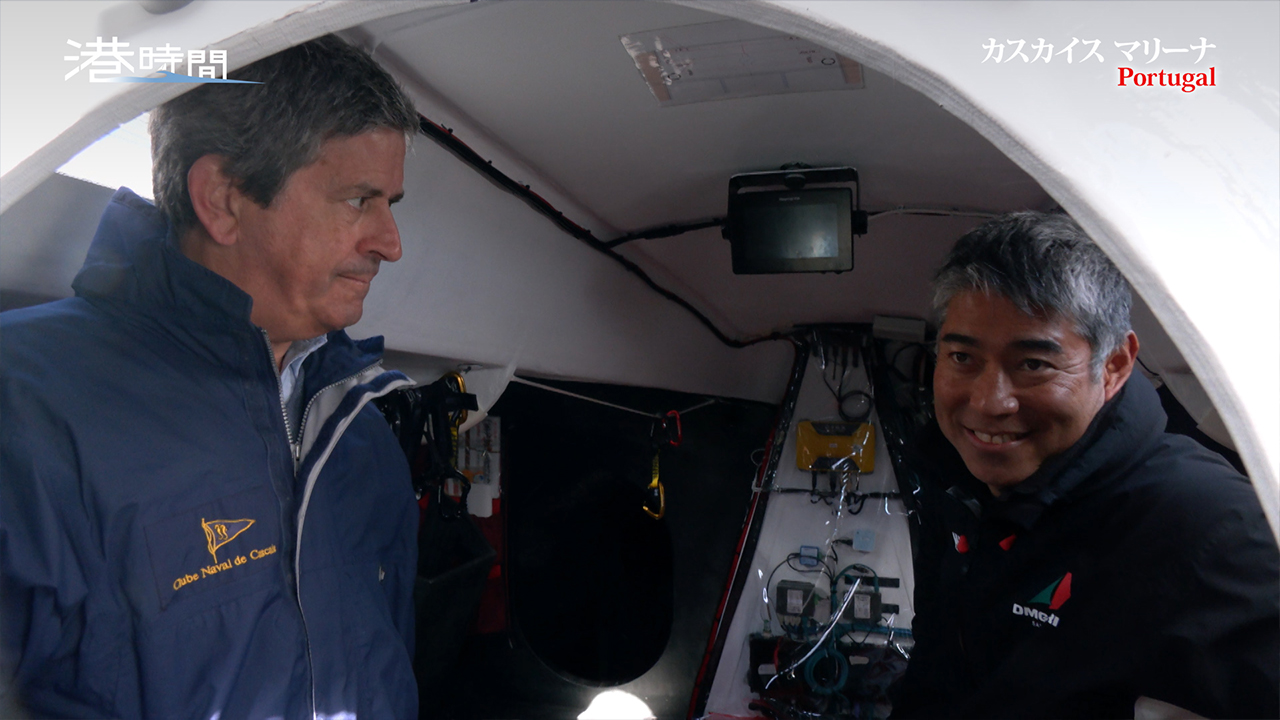 ポルトガルのカスカイスマリーナに深夜到着したレーシングヨットに乗っていたのは白石康次郎さん。フランスからトレーニングのためにやって来ました。カスカイスヨットクラブの元会長から温かい歓迎を受けました。