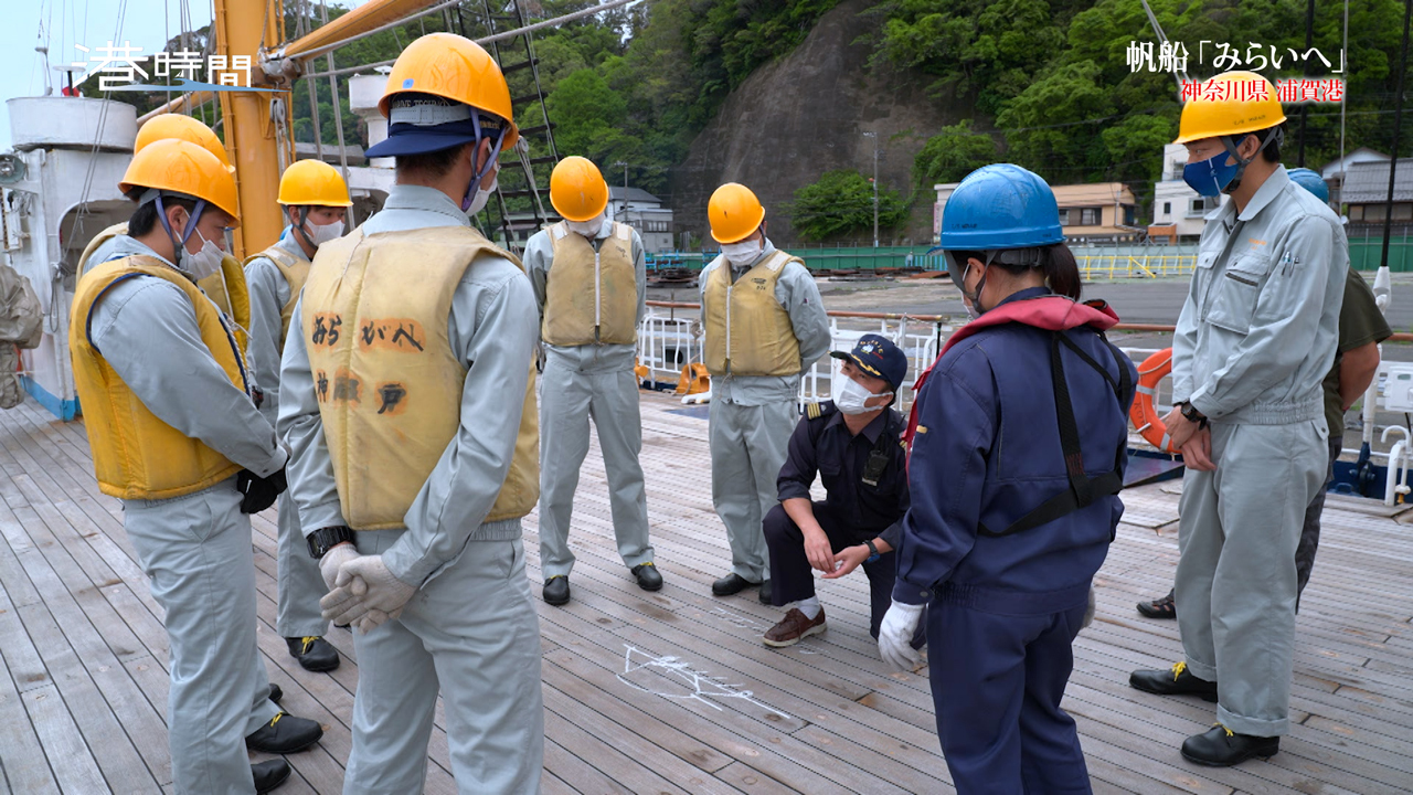 浦賀ドックで海に携わる仕事を目指す人の航海研修に使われている帆船「みらいへ」が出港準備をしていました。神戸へ向け出航する前の研修生たちを訪ねました。