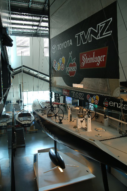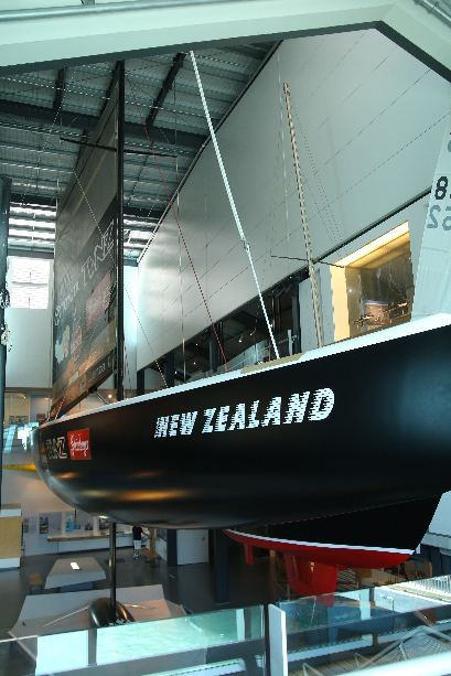 彼が17歳のときに仲間と共に家の裏庭で作ったと言われているBandit号と1995年に初めてアメリカスカップを奪取したときのボートNZL32通称ブラックマジックの二艇が並べて展示されていた。もちろん模型ではなく実艇で迫力があった。