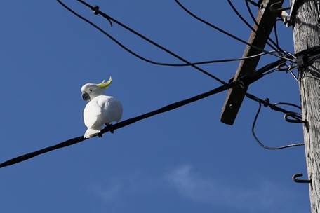 よく電線に留まっているのが、Sulphur-crested Cockatoo。