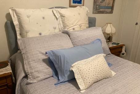 このベッドの上のクッションの数、すごくないですか!?