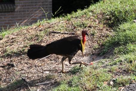 道路脇をうろついているのはBrush turkey。いわゆる七面鳥ですね。