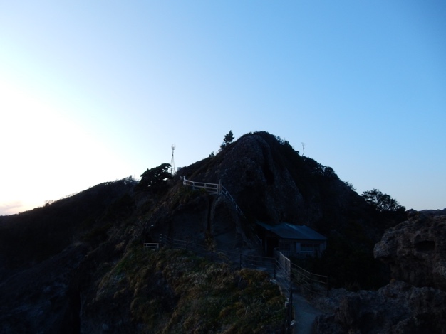日没となり灯台の敷地内は閉鎖 街灯など皆無の辺りは狭い歩道があるのみ…