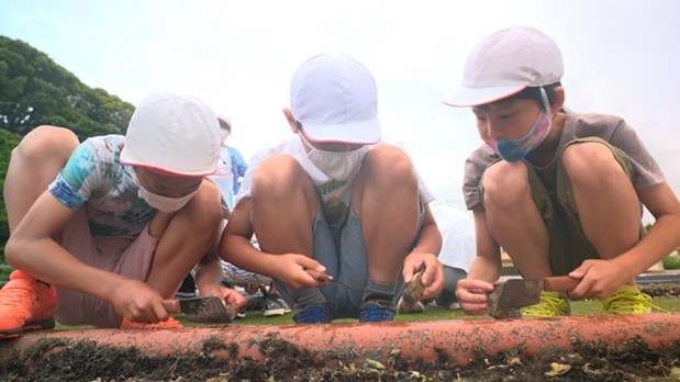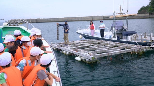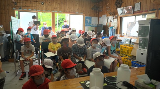 やってきた地元名向小学校の生徒達が体験したのは、船に乗って真珠の養殖の現場を見に行き 真珠を育てるアコヤ貝の掃除・プランクトンの生態の調査など教室での授業では学べない事ばかり、目を輝かせていました