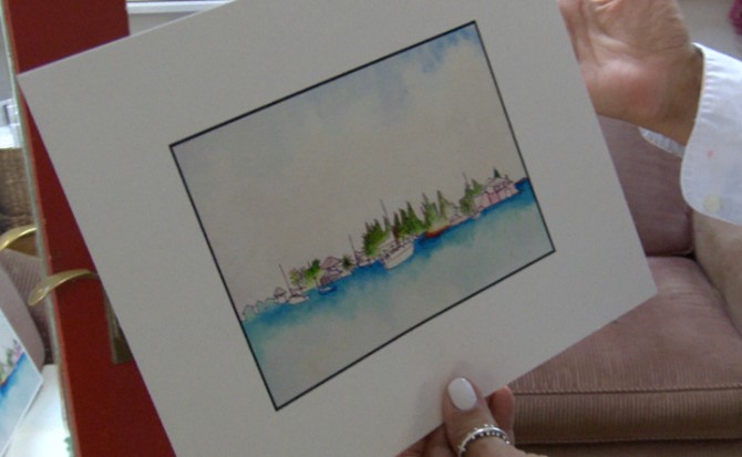 ヨット生活をしていた23歳の時、対岸から描いたという景色の水彩画です。