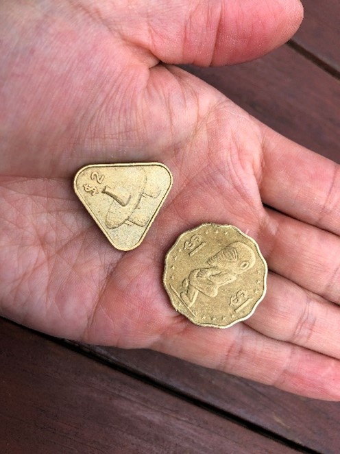 ニュージーランドやオーストラリアでは1ドルコインと2ドルコインが混同しやすいのですが、この方が分かりやすくて良いですね