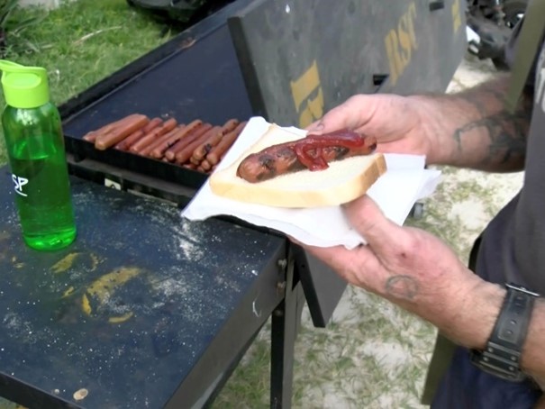 終了後には食パンにソーセージを挟む定番のBBQが振る舞われ、