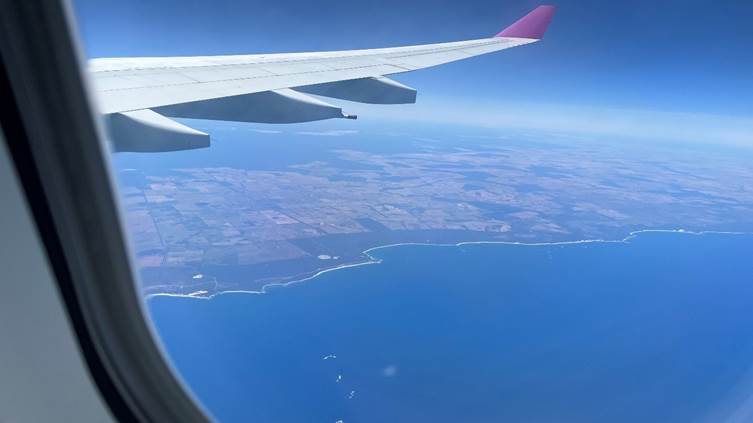 オーストラリアを横断するつもりで砂漠の上を飛んでいくのかと思っていたら、