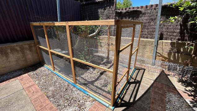 裏側に金網のトンネルがあって母屋の裏口ドアにつながっています