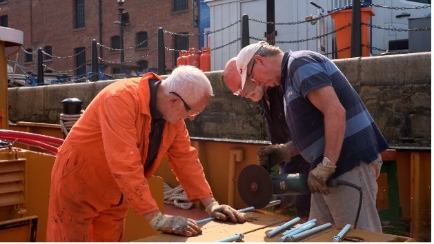 1964年に造られたタグボートを週2回集まってコツコツ修理していました