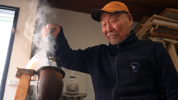 アトリエにはコーヒーコーナーがあり なんと焙煎して挽いて淹れているのだ