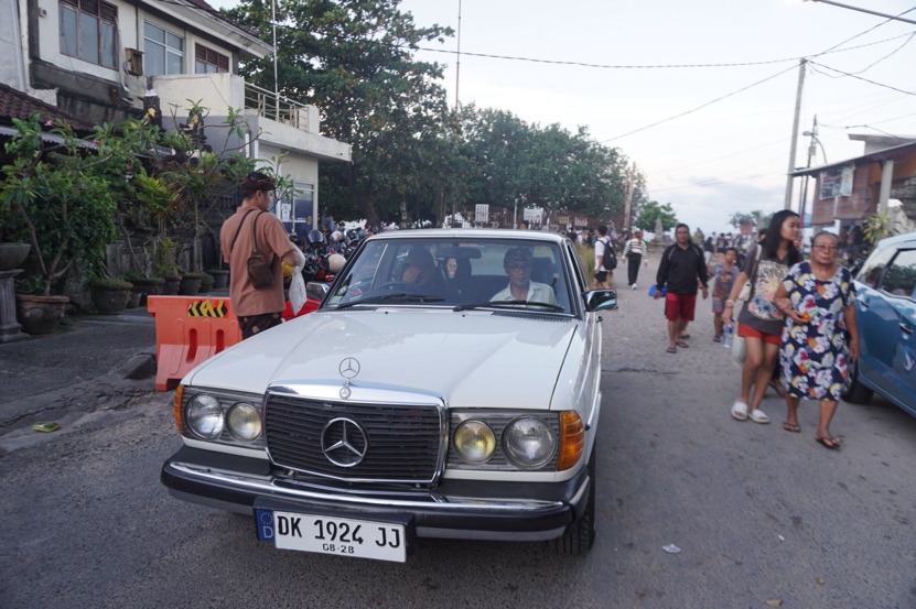 最初にびっくりしたのは自家用車。ベンツのクラシックカー1986年製です。まわりの観光客の視線を浴びます。