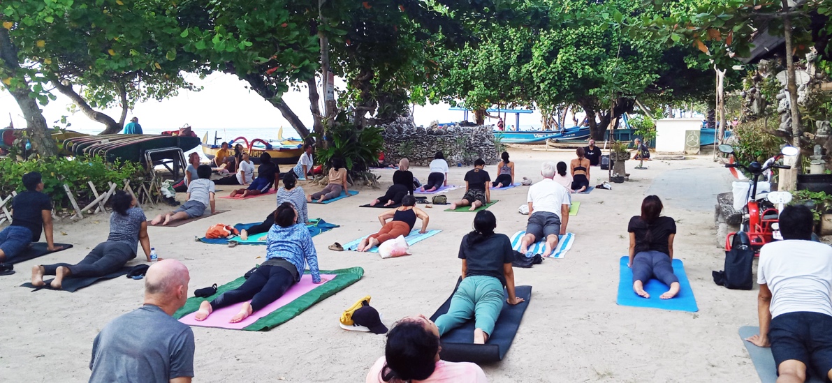 こちらは毎日開催している無料ヨガ教室。