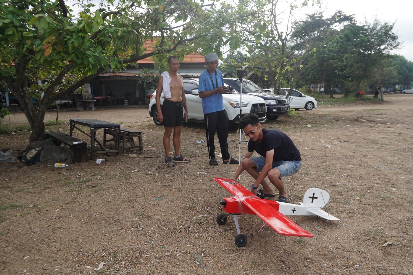 手製の飛行機のプラモデルを飛ばす人たちも。飛ばすのがお好き?!