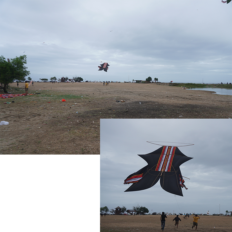 港周辺の広場ではインドネシア人が大好きな凧揚げを楽しむ人たちがいました。凧揚げのスケールが桁違い!