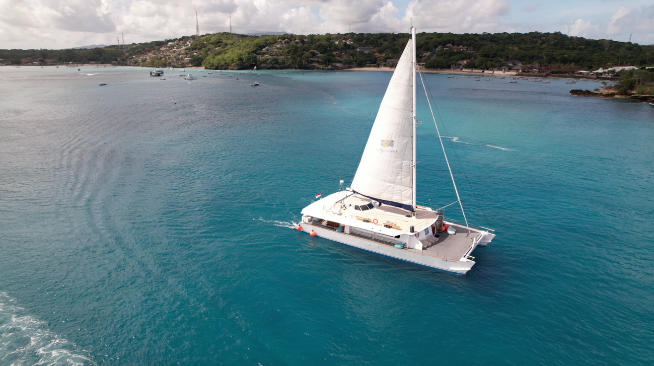 今回取材したのは、クルーズ会社が提供する日帰りツアーに組み込まれた「サンゴ修復プログラム」。ツアーの見どころは、レンボンガン島の散策やビーチだけでなく、バリ島からレンボンガン島へのヨットクルージングです。