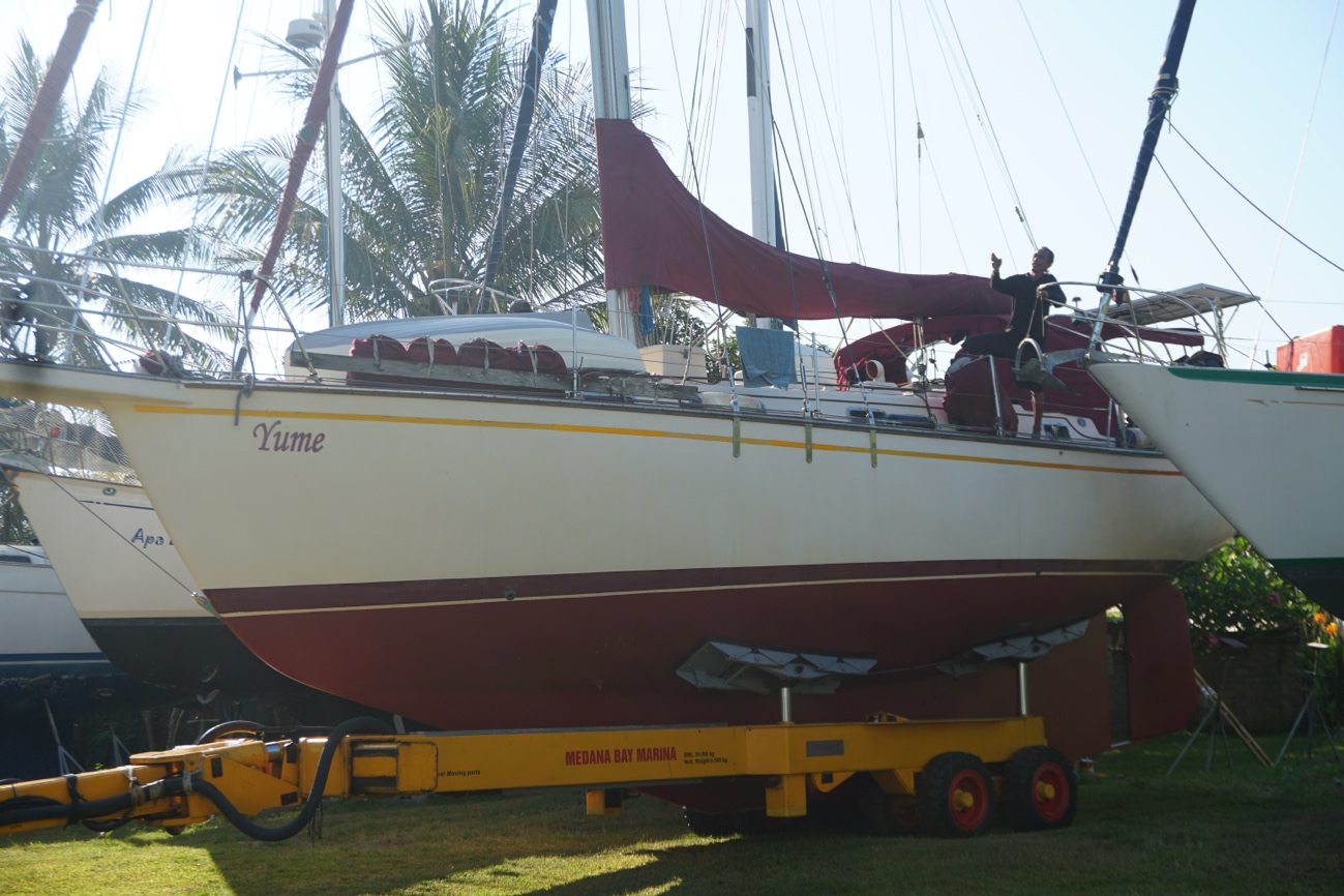 ヨットの停泊する港には様々な施設がありますが、今回取材した港には陸上にヨットを引き上げて修理できるドライドックがありました。