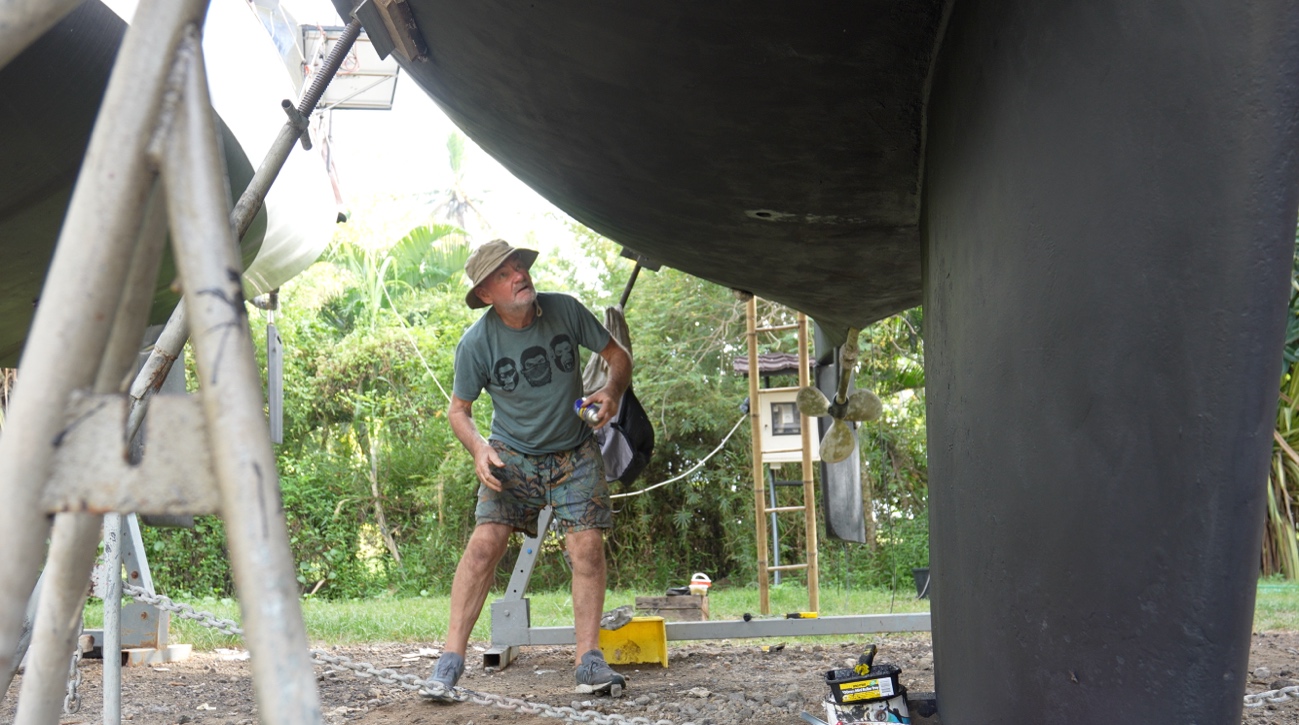船底をじっくり目視できる機会はめったにないので、セーラーたちは集中してメンテナンスをしていました。