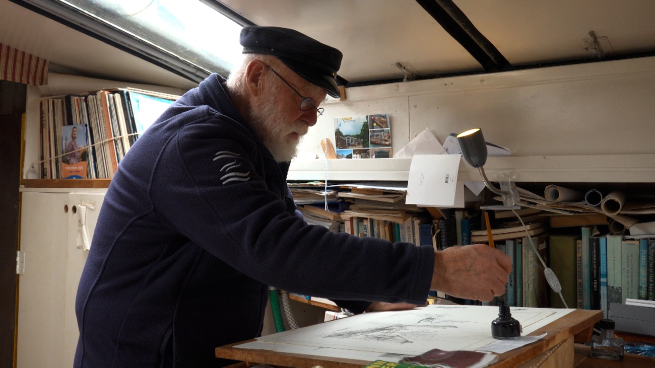 1971年に廃棄場で見つけた貨物船を夫婦で修理しヨーロッパ中を旅しながら6人の子供を育て上げた奥様との人生の物語を訪れた人々に伝えています。