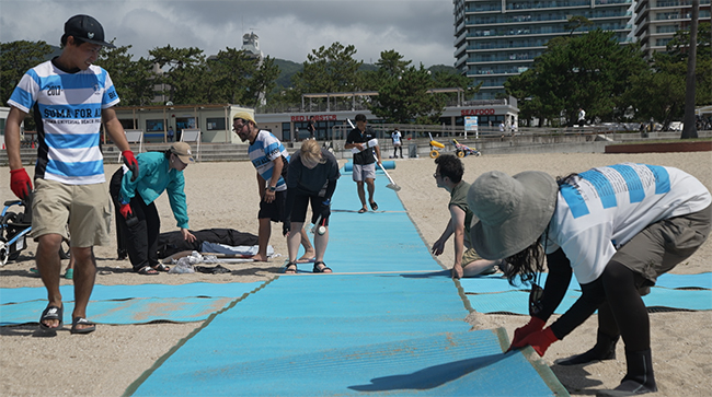 神戸市の須磨海岸で、木戸さんは車いす利用者が海水浴をする機会を作ってきました。砂浜に車輪が沈まない特殊なマットを波打ち際まで敷くことで、車いすのまま海に近づくことができます。これまでに全国50ヶ所以上の海岸で、マットを広げてきました。初めての海水浴や、しばらく海から遠ざかっていた人々の希望を叶えています。「海水浴だけでも大冒険。乗り越えようと思って海にきて欲しい。それだけで一生の思い出になる」