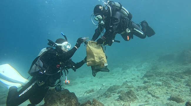 静岡県伊東市に住む白井さんは、伊豆半島の海で、水中のゴミ拾いをしています。4年前に、東京から伊東市に引っ越したのをきっかけに、ダイビング仲間を誘って環境問題に取り組む団体をつくりました。漁協の許可を得て、海沿いにゴミ箱を設置。ダイバーたちには、1度の潜水でゴミを1個拾う習慣を呼びかけています。「綺麗な海で潜りたいと思って、海のゴミはダイバーにしか拾えないし、私たちだから出来ることかなって」