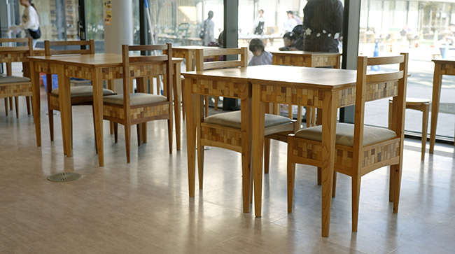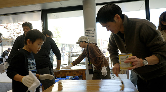 東京の世田谷区などで湧口さんが行っているのが、学校の木や街路樹を木材として活かす「都市林業」という取り組みです。2012年から始め、地域の人と一緒に製材し、家具や建材にしています。建築家として木造住宅などを手がけていましたが、建物の材料と、生活する人々とのつながりが失われていることに疑問をもちました。「街の木は傷んでるから効率のいいことではないけど、伐採して活用して新しい木を植えるサイクルをつくること」