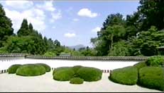 洛北西賀茂の正伝寺は、鎌倉時代に創建された臨済宗の禅寺。伏見桃山城の遺構、方丈。その前に広がる庭は、比叡山を借景とした名庭です。白砂敷平庭に、つつじの刈り込みが配された禅の境地を表す庭。小堀遠州作の庭は、「獅子の児渡し庭園」の名で知られます。