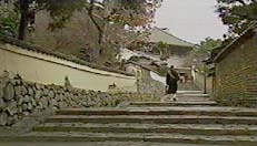 石畳と土塀の小径。この道は、東大寺二月堂へと向かう裏参道とよばれています。幾重にも重ねられた古い瓦。悠久の奈良の歴史を感じさせてくれます。人通りも少なくゆっくりと古都の雰囲気にひたることが出来る小径です。